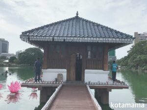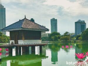 まず、シーママラカヤ寺院はコロンボ中心部にあるベイラ湖の上に建つ寺院です。