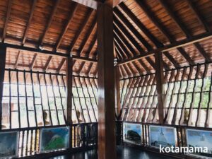 まず目につくのは、湖の上に浮かぶように配置された木造の本堂です。